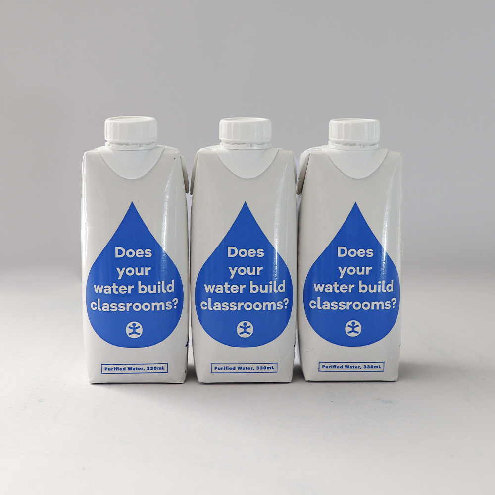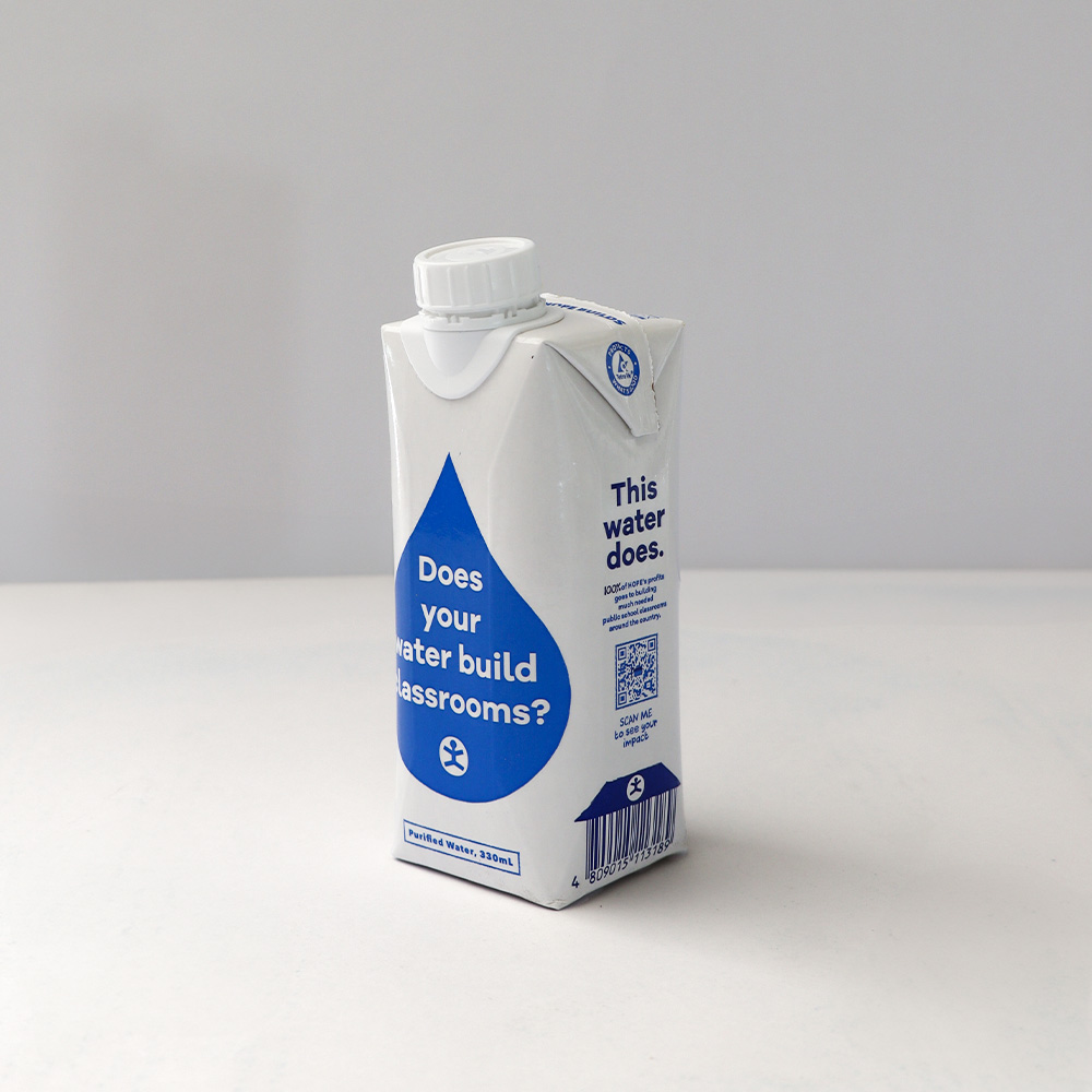 We teamed up with Tetra Pak to create the country’s first-ever boxed water! Just like our bottled water, 100% of profits go to building public school classrooms in the Philippines where they are needed most. Drink HOPE, Give HOPE! Learn more about our education impact here.